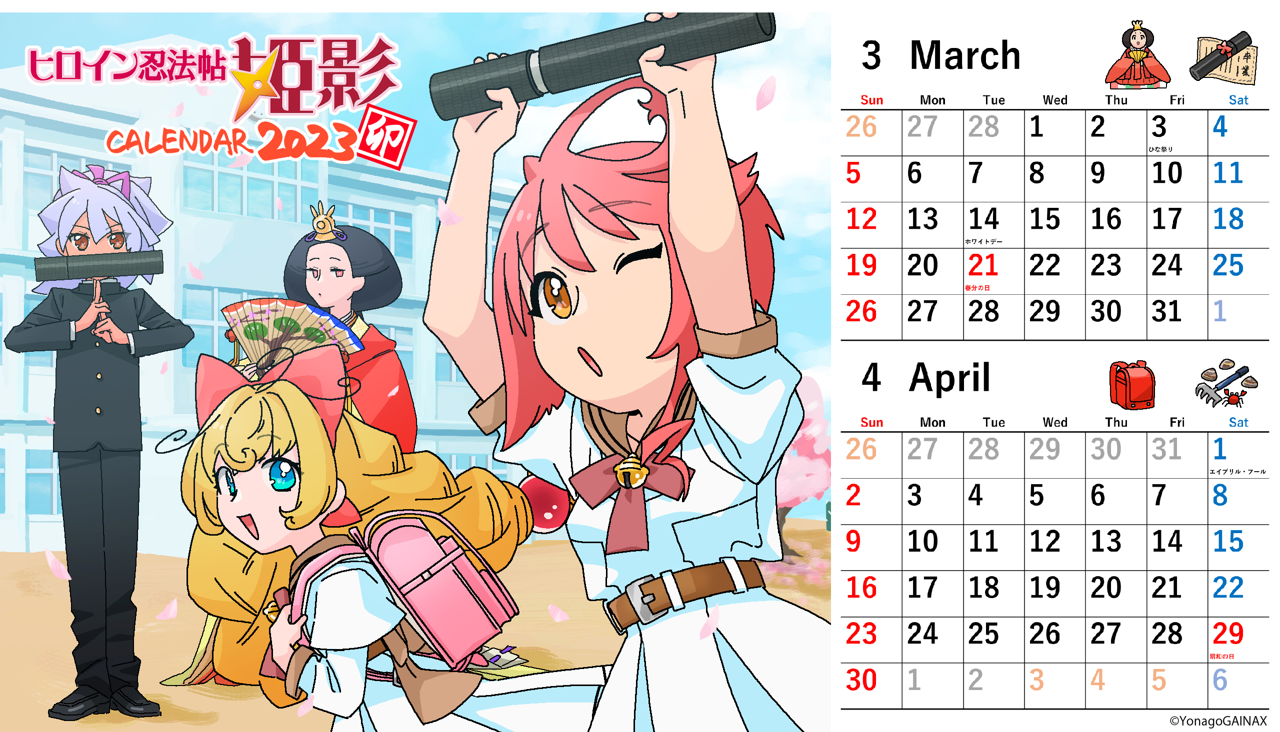 姫影の3、4月のカレンダーだよ。